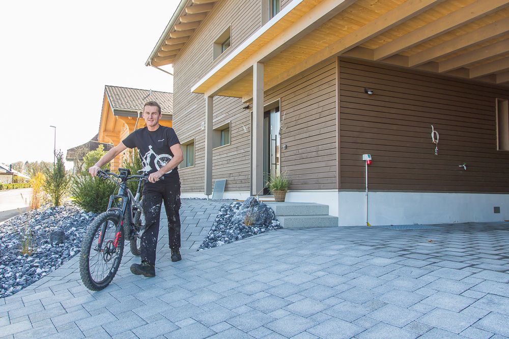 „In der heutigen Zeit müssen wir nachhaltiger bauen. Das war mir ein grosses Anliegen. Aus diesem Grund hat mich die Bauweise mit Stroh und Lehm von Sieber Haus sofort fasziniert. Das Klima im Haus ist dadurch sehr angenehm. Auch viele Gäste merken, dass das Klima in unserem Haus anders ist als in einem normalen Betonbau. Zudem habe ich auf dem Dach eine Solaranlage, mit der ich mein Elektroauto aufladen kann.“